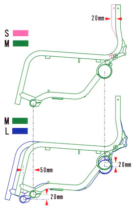![]() クロスメンバーには高剛性タイプを採用し、軽く、強く、乗りやすくなりました。 |