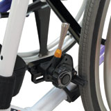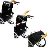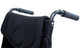 | 上着のスソ汚れを防ぎます。インナーポケット付きなので、小物入れとしても便利です。LRは取付不可。 | 車いす前方の塗装面を保護します。 プッシュアップ時の滑り止めにもなります。 |