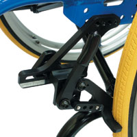 | オーエックスの全てのブレーキは、効き具合をその場で簡単に調整できます。車軸位置の変更、タイヤの空気圧変化、滑りやすい雨天時などで有効です。ブレーキ解除時の安全性に配慮し、タイヤとブレーキシューの間隔を確保しました。 万が一、タイヤを握りホイールを回転させてしまった場合でも、手とブレーキの接触による怪我を最小限にとどめます。 ブレーキの取り付け位置 【上付け】メインフレーム上部に取付けたタイプです。 【下付け】メインフレーム下部に取付けたタイプです。 |