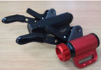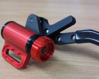 ブレーキレバーを垂直方向にレイアウトしたタイプです。 外側のノブを回すとブレーキをスライドさせることができ、効きの調整ができます。 ブレーキレバー長は4サイズ55/75/110/140oから選択可能です。 |
