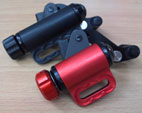 ブレーキレバーを垂直方向にレイアウトしたタイプです。 黒いダイヤルを回すとブレーキシューが移動し、効きの調整ができます。 ブレーキレバー長は4サイズ55/75/110/140oから選択可能です。 |
