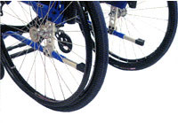 メインホイールを外し、壁などをつたいながら移動するためのものです。 両側のメインホイールをはずした状態で、全幅が約50mm程狭くなります(ハンドリム取付間隔10mmの場合)。 狭いトイレや航空機内などでご活用ください。 |