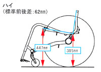 【フレームタイプ/フレーム高】 ※数値はシート奥行き350mm/タイヤサイズ25-540/キャスターフォークCZ1-Std/キャスターホイール径92mm/キャスターホルダー穴 最下穴の場合です。 |