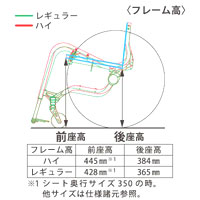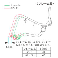 ![]() 車軸前後位置寸法は70mm〜40mm(10mmピッチ)まで調整ができます。 |