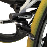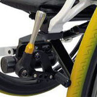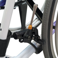 ブレーキレバーを水平方向にレイアウトしたタイプです。ブレーキ解除時に、突出が少なく、狭い場所へ侵入しやすいです。オプションのリア・マイクロホイールとの併用により、ホイールを外した時、車いすの全幅を抑えることができます。 |