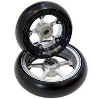 振動吸収性の高い高性能扁平ゴムを採用。タイルやアスファルトの細かい凹凸による不快な振動を和らげてくれます。足元を引き締めるコアはアルミ総削り出し。(ゴム部分のみを交換することも可能です。) ■80・95・105・125mm |
