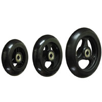サスペンションを備えたような乗り心地と、35mm幅のタイヤによる走破性が特長です。 タイヤ(ゴム)交換が可能なキャスターホイールです。 ■100・125mm |