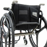 高さ調節が可能な肘掛です。体幹をまっすぐ保つために使用したり、プッシュアップに使用したり出来ます。 電動車いすは、アームレストが標準装備されています。 こちらは、着脱式が選択可能です。固定タイプに着脱用アダプターを装着するタイプです(ボルト固定不可)。 |