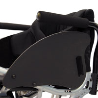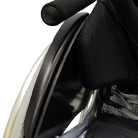 樹脂製のサイドガードに、車いすのデザインを損なわない軽量で小型のフェンダー(泥よけ)を装備しました。 衣類や手をタイヤから守ります。こぐのに邪魔にならない大きさです。 *スイングスーツガード、スーツガード、サイドガードとの併用は出来ません |