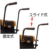 介助者の押しやすい高さに調節可能です。 スライド式は必要のない時コンパクトに収納できます。 *はね上げ式アームレスト・グリップ・ストレートパイプとの同時装着不可 *スライド式はアームレスト高をハイタイ プ290に設定した場合は選択不可 *バックレスト角が106以上は取り付けできない場合があります |