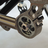 ![]() フレームパイプ径の見直しにより、約100gの軽量化に成功しました。 |